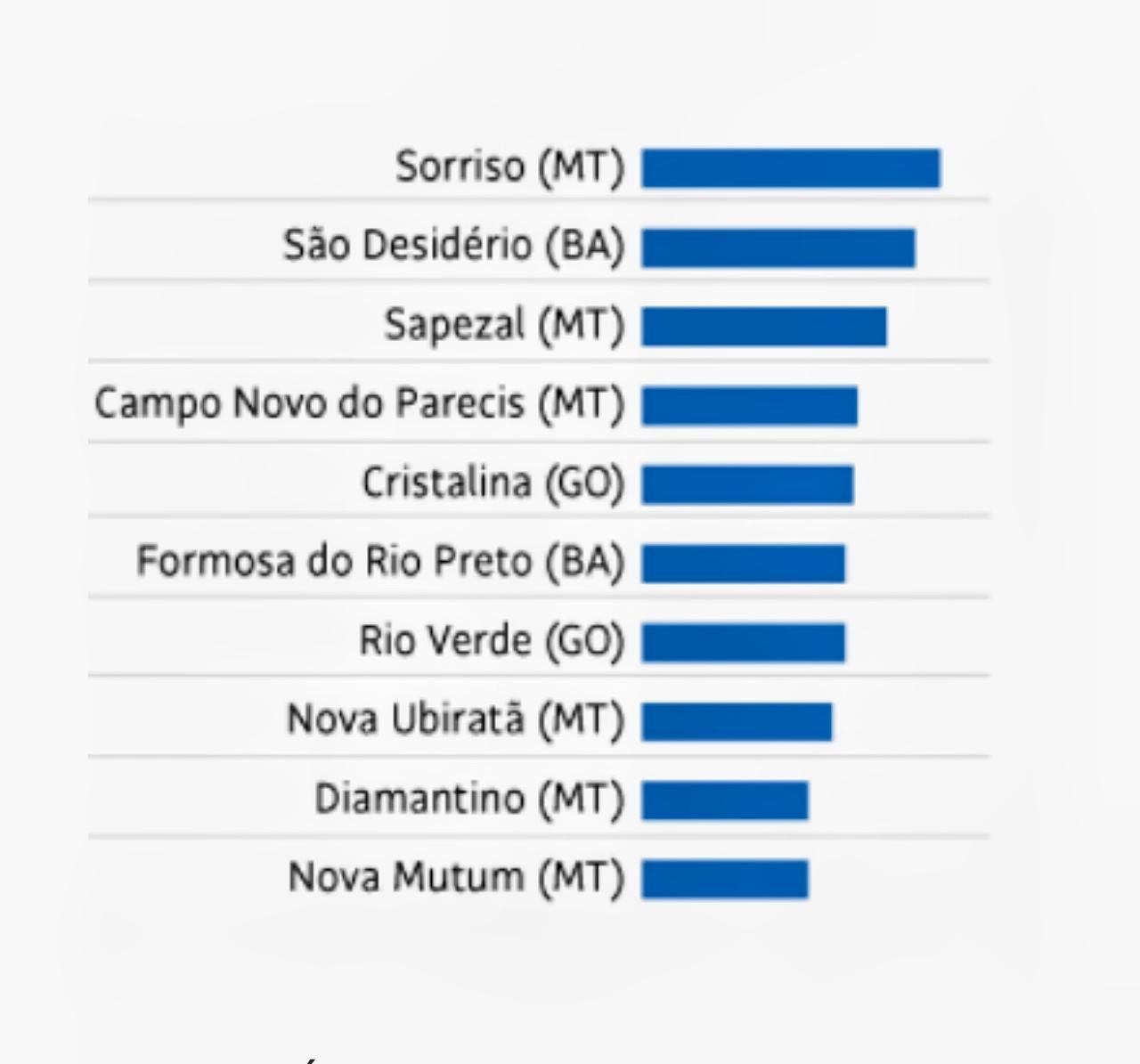 Dos dez municípios com maior valor de produção em 2024, Cristalina foi o único a registrar crescimento nominal em relação ao ano anterior.
